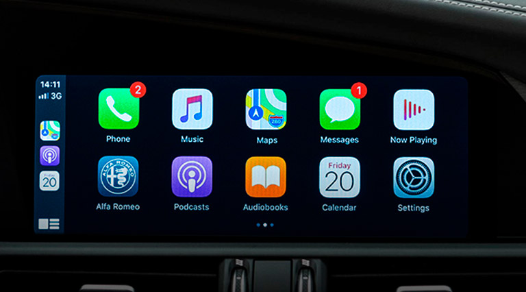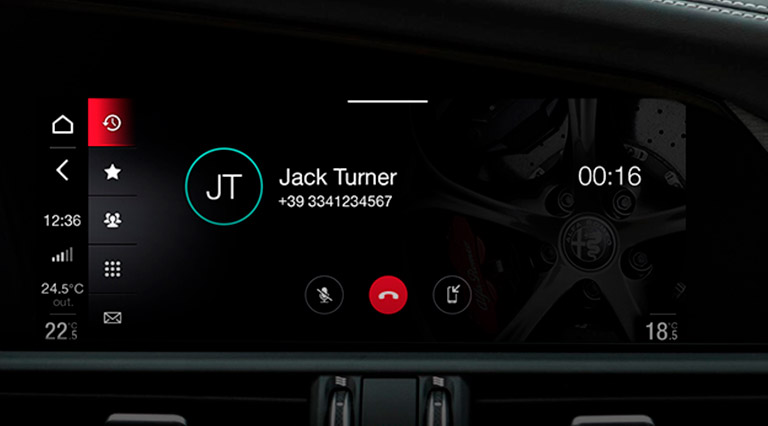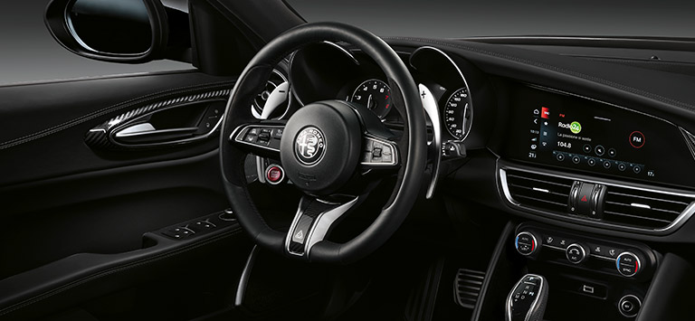 Une technologie qui change et facilite votre quotidien. A bord de Giulia Quadrifoglio, retrouvez une large gamme de services de connectivité Alfa Connect.